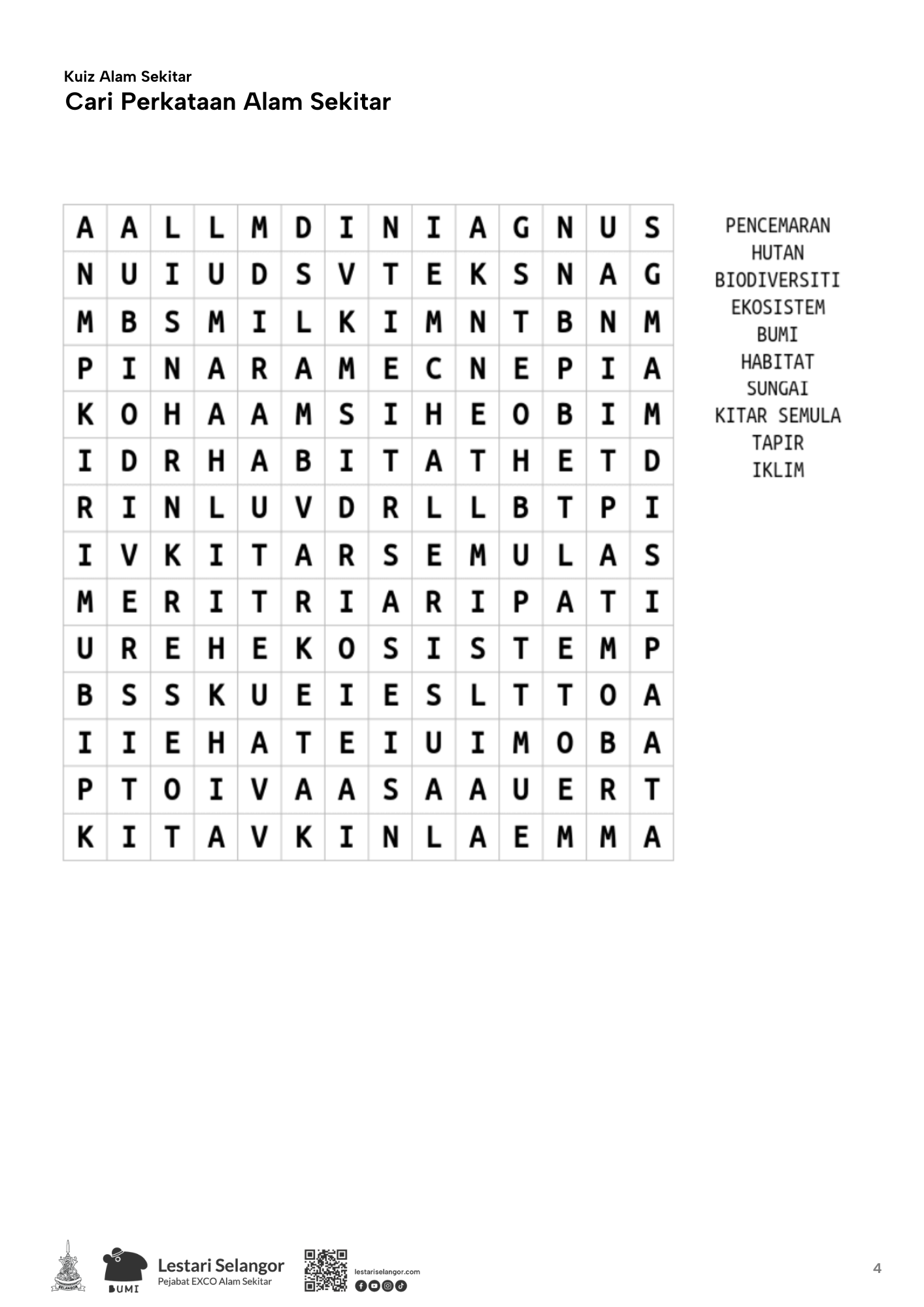 Kuiz Cari Perkataan Alam Sekitar